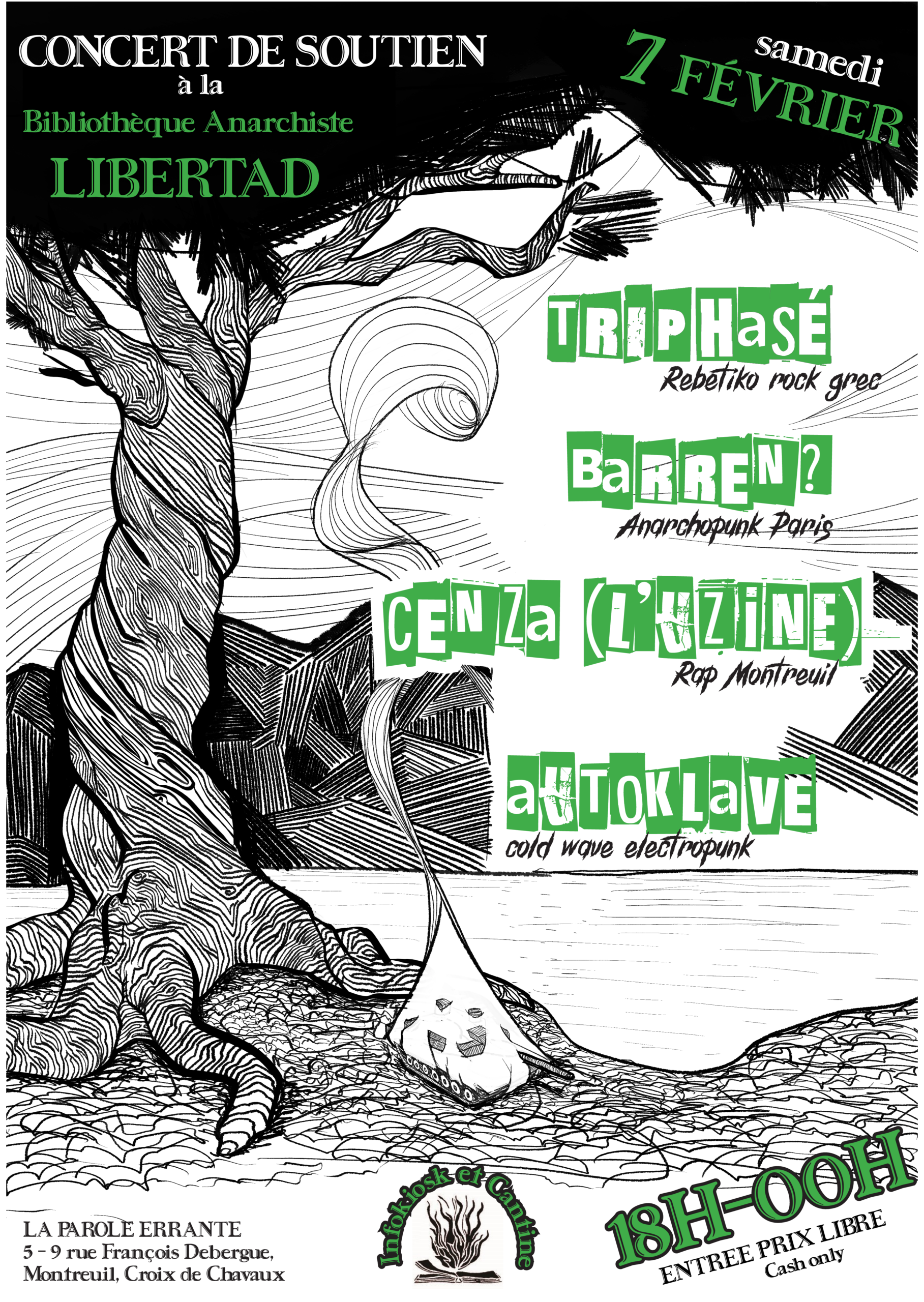 Le samedi 7 février 2026 à La Parole Errante 9 Rue François Debergue, 93100 Montreuil, métro Croix de Chavaux / Entrée prix libre (cash only)